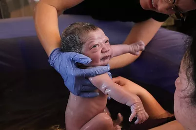 Less than 10 minutes later I birthed baby’s head in the water and his shoulders and the rest of his body was born with the next wave.
